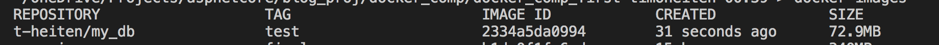 So we now have the image, tagged as test with the name t-heiten/my_db.