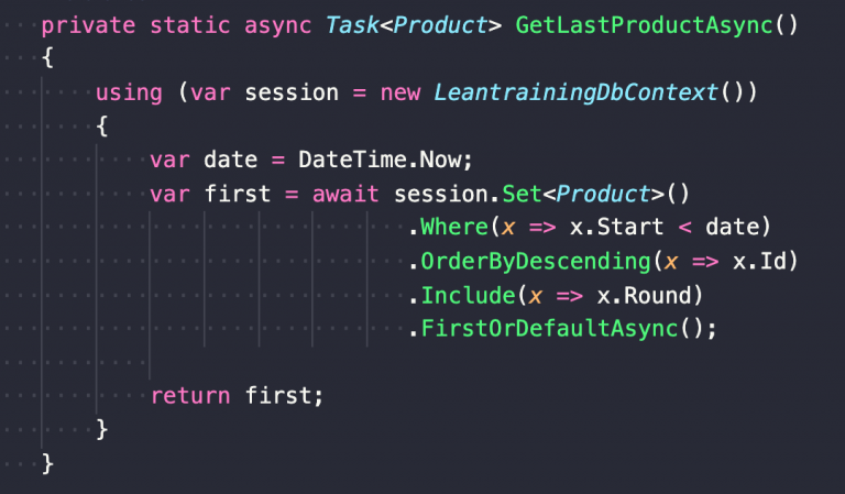 Bei der Verwendung der asynchronen Methoden auf dem DbContext ist es außerdem wichtig diese ordnungsgemäß mit await abzuwarten, bevor die nächste gestartet wird.