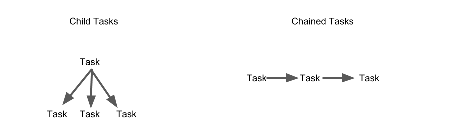 The parts we looked at until now, viewed a task as a unit of async work as “island” of activity. That is, a task did some work and then when it is done, it frees the thread and the resources it occupied. To get relationships working between tasks you can chain tasks together to arrange parent-child relationships.